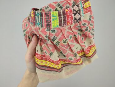 - Wzór: wielobarwny, etniczno-geometryczny print w pasy; kolory m.in. koralowy, beż, żółty, turkus, brąz.