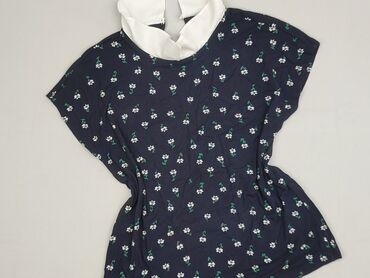 Damska bluzka z krótkim rękawem w granatowym kolorze, z nadrukiem kwiatowym w odcieniach bieli. - Krój: prosty, swobodny, z okrągłym dekoltem - Rękaw: krótki, lekko luźny - Wzór: duże kwiaty i ab...