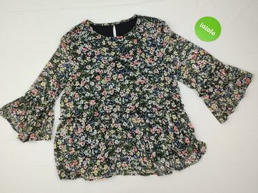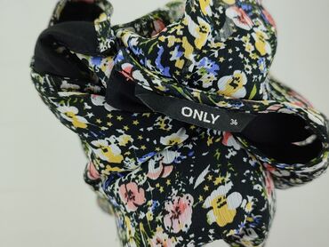 Bluzka damska ONLY, rozmiar 36. - Wzór: kolorowy, kwiatowo-roślinny na czarnym tle - Fason: prosta, z okrągłym dekoltem; rękawy długie z falbaną przy mankiecie - Zapięcie: pęknięcie z tyłu szyi na...