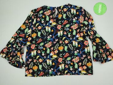 Bluzka damska ONLY, rozmiar 36. - Wzór: drobna, kolorowa łąka kwiatowa na czarnym tle (róże, żółcie, biel, niebieski, zieleń). - Krój: luźny, z delikatnym odcięciem/ściągnięciem w talii i falbaną ...