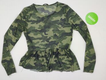 Bluzka damska H&M, rozmiar XS (EU/UK XS, US XS, CA 160/80A, MX XCH). - Fason: luźny, z okrągłym dekoltem - Rękawy: długie - Wzór: moro (zielony, khaki, czarny, beżowy) - Dzianina prążkowana – e...