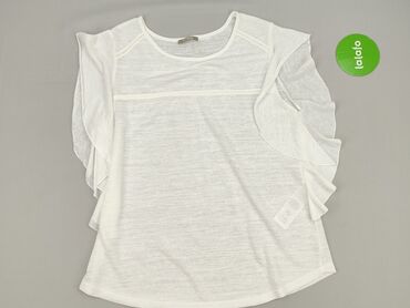 Bluzka ORSAY, rozmiar L - Fason: lekko luźny, z dekoltem w kształcie V i krótką listwą zapinaną na ozdobne guziki w kształcie perełek - Rękawy: długie, gładkie w kolorze białym - Przód: tkanina z ...