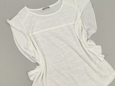 Bluzka damska Orsay, biała, z ażurowymi wstawkami na ramionach. - Krój: luźny, z krótkim rękawem typu kimono i lekko zaokrąglonym dołem z tyłu. - Dekolt: łódka. - Materiał: cienka, przewiewna dzia...Stan: