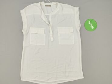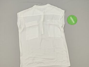 Biała bluzka damska Orsay, bez rękawów. - Rozmiar: EU 36 (metka widoczna na zdjęciu) - Krój: swobodny, warstwowy – asymetryczna, zwiewna narzutka z delikatnie kreszowaną fakturą materiału, pod spo...