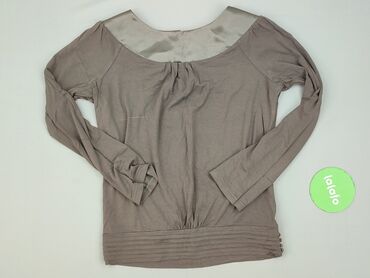 Bluzka damska Orsay z długim rękawem - Kolor: beż/jasny taupe - Krój: prosty, z okrągłym dekoltem - Przód z gładkiego, delikatnie połyskującego materiału; tył i rękawy z elastycznej dzianiny - Ozd...