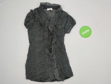 Bluzka damska Orsay w kropki - Kolor: czarny w drobne białe groszki - Fason: luźniejszy, z dekoltem w kształcie litery V - Rękawy: długie, lekko marszczone - Dół: delikatnie zaokrąglony, tył nieco...Stan: