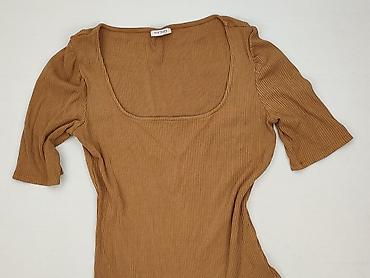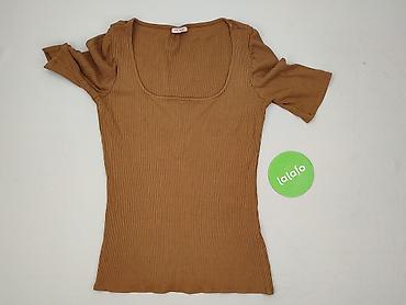 Bluzka damska Orsay - Fason: dopasowany, prążkowany materiał - Kolor: karmelowy/ceglasty - Dekolt: w serek z przodu; ozdobne wycięcie na plecach w kształcie łezki - Rękawy: krótkie, delikatnie mar...