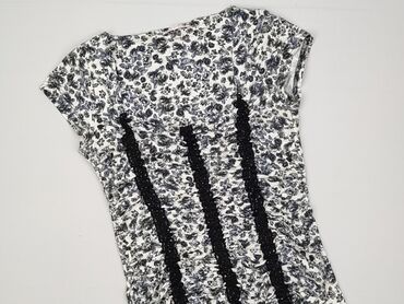 Bluzka damska Orsay z krótkim rękawem. - Kolor: biały - Ozdobne wstawki koronkowe na ramionach w czarno-biały, kwiatowy wzór - Okrągły dekolt - Elastyczny, prążkowany ściągacz u dołu i przy dekolc...