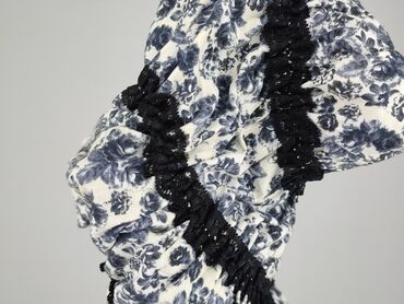 - Wzór: gęsty, kwiatowy print w odcieniach granatu/szarości na białym tle