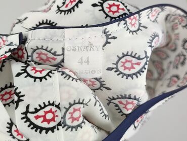 Bluzka damska O&S, rozmiar L/XL - Kolor: intensywny kobalt/królewski niebieski - Fason: dopasowany, z długim rękawem - Rękawy z plisowanej, półtransparentnej tkaniny - Przód ozdobiony dużą, przest...Stan: