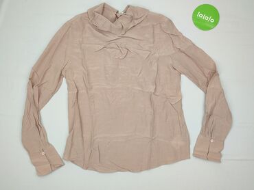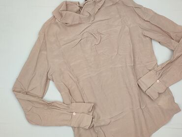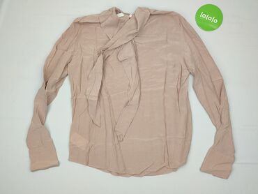 Bluzka damska z długim rękawem, beżowa/ecru, rozmiar EU 38 (US 8). Lekko oversize’owy fason z obniżoną linią ramion, dekolt w kształcie V z wiązaniem na troczki zakończone metalowymi końcówkami. Rę...