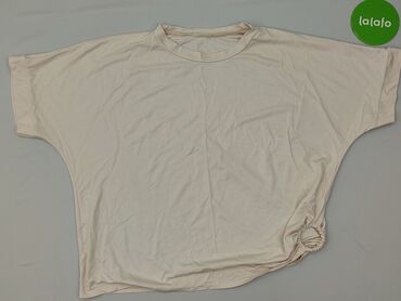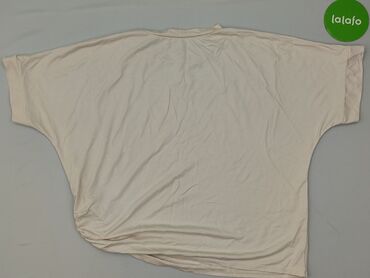 Ażurowa bluzka damska w kolorze ecru/kremowym. - Krój: luźny, z krótkim rękawem typu nietoperz. - Materiał: 95% wiskoza, 5% elastan (metka ze składem widoczna na zdjęciu). Delikatna, elastyczna dz...Stan: