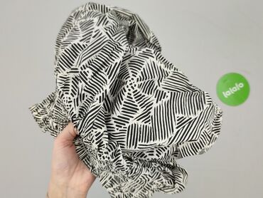 Bluzka damska UeFASHION, rozmiar XL - Materiał: 100% wiskoza (etykieta) - Kolor/wzór: czarno‑biały, geometryczny/etniczny print - Krój: luźny, z delikatnie zaokrąglonym dołem - Rękawy: krótkie z f...