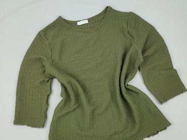 Bluzka damska Papaya - Kolor: khaki/oliwkowy - Krój: luźny, z dekoltem w serek (V-neck) - Rękaw: 3/4 - Mała kieszonka na piersi - Drobno melanżowa, lekko prążkowana faktura dzianiny - Rozcięcia po...Stan: