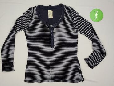 Kobieca bluzka marki Papaya, w rozmiarze L, charakteryzująca się wzorem w białe paski na granatowym tle. Bluzka z krótkim rękawem, ozdobionym falbankami. Idealna do noszenia na co dzień, zapewnia k...