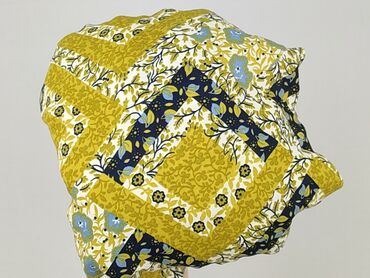 - Kolorystyka i wzór: patchworkowy nadruk w odcieniach musztardowej żółci, granatu, bieli i jasnego błękitu; motywy roślinne i geometryczne