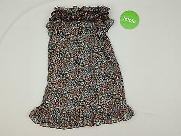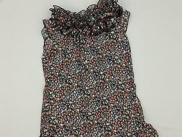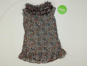 Bluzka damska w kwiaty, rozmiar M. - Fason: bez rękawów, z romantyczną falbaną przy dekolcie i na ramionach - Dekolt: kopertowy/V - Zapięcie: z przodu na guziki - Dół: lekko marszczony, elastyczny...
