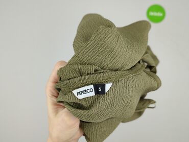 Bluzka damska Pepco, rozmiar M. - Fason: prosty T‑shirt bez rękawów, z podwiniętymi krawędziami przy ramionach, okrągły dekolt. - Kolor: jasna, oliwkowo‑złota z delikatnym, połyskującym efektem. -...