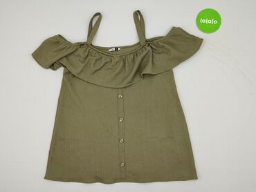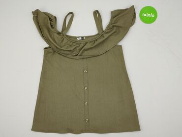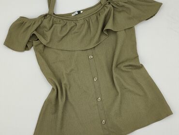 Bluzka damska PEP&CO - Kolor: oliwkowa zieleń - Rozmiar z metki: 12 - Krój: koszulowy, zapinana częściowo na guziki (plisa z trzema guzikami) - Kołnierzyk klasyczny - Rękawy 3/4 z szeroką, marszcz...