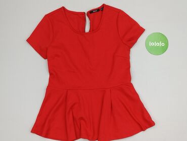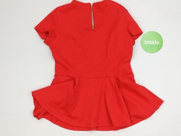 Krótki rękawCzerwona bluzka damska Esmara z krótkim rękawem, charakteryzująca się ozdobną falbanką peplum w talii, która dodaje jej elegancji i podkreśla sylwetkę. Bluzka posiada okrągły dekolt i zapięcie na zamek błyskawiczny z tyłu, co ułatwia zakładanie. Wykonana z mieszanki poliestru, wiskozy i elastanu, co zapewnia komfort noszenia oraz dopasowanie. Idealna na różne okazje.