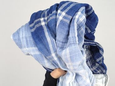 Bluzka damska z lekkiej, półprzezroczystej tkaniny w odcieniach niebieskiego. - Fason: luźny, prosty, długość do bioder - Dekolt: łódka - Rękawy: krótkie, szerokie, zwiewne - Wzór: tłoczony/haftow...