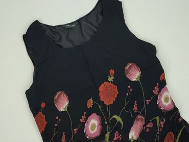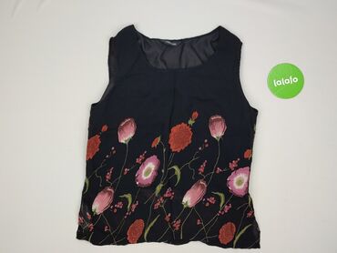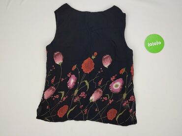 Bluzka damska RESERVED, rozmiar S - Krój: luźny, bez rękawów, z delikatnym ściągaczem u dołu - Kolorystyka: czarny z przodu z dużym, kwiatowym nadrukiem w odcieniach żółci, beżu, bieli i niebieski...