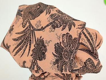 - Wzór: orientalno-roślinny z motywem ptaków; nadruk w odcieniach czerni na tle brzoskwiniowo-różowym