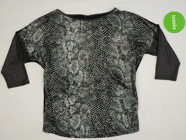 Bluzka damska z wzorem wężowej skóry - Krój: luźny, lekko wydłużony tył z zaokrąglonym dołem - Dekolt: łódka z delikatnym pęknięciem V z przodu - Rękaw: 3/4, lekko rozszerzany przy mankiecie - Wzó...Stan: