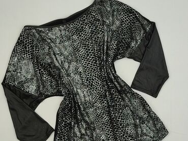 Bluzka damska z wzorem wężowej skóry - Krój: luźny, lekko wydłużony tył z zaokrąglonym dołem - Dekolt: łódka z delikatnym pęknięciem V z przodu - Rękaw: 3/4, lekko rozszerzany przy mankiecie - Wzó...