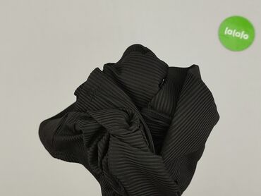 Czarna bluzka damska z długim rękawem, rozmiar L. - Materiał: 100% poliester (miękka, elastyczna dzianina w drobny prążek). - Fason: dopasowany, z delikatnie podniesioną stójką. - Ozdoby: pionow...