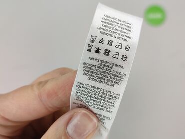 - Pielęgnacja: prać z podobnymi kolorami, prasować w niskiej temperaturze, nie wybielać, nie suszyć w suszarce; dekorację omijać podczas prania