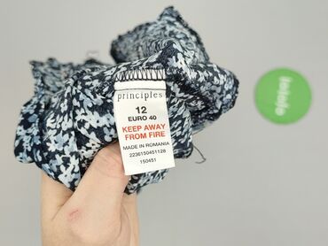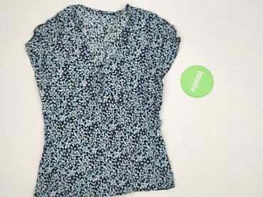 Bluzka damska Principles - Model z kopertowym dekoltem (V-neck) i krótkim rękawem - Niebiesko-biały, abstrakcyjny wzór przypominający tie-dye - Wiązanie w pasie + delikatne marszczenie, lekko pepl...