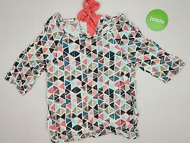 Bluzka damska PM, rozmiar M - Krój: prosty, delikatnie dopasowany, z zaokrąglonym dekoltem - Rękaw: 3/4 - Wzór: abstrakcyjny/geometryczny nadruk w odcieniach bordo, fioletu, granatu, bieli i jasne...