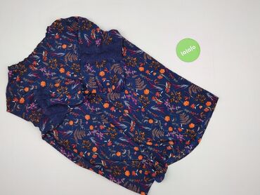 Bluzka damska Deni, rozmiar 44. - Kolor: granatowy. - Wzór: drobne, kolorowe kokardki/trójkąty w odcieniach różu, fioletu, mięty i żółtego. - Fason: lekko rozkloszowany dół z falbaną, taliowanie po...