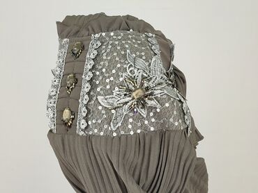 - Przód zdobiony: panel z koronki i cekinów, aplikacje kwiatowe z haftem i koralikami, trzy dekoracyjne kamienie/szklane guziki