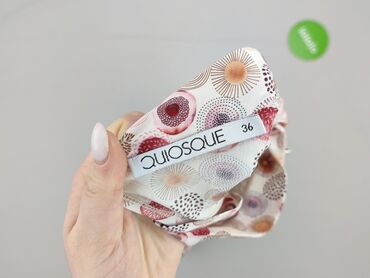 Bluzka damska QUIOSQUE, rozmiar 36. - Krój: luźniejsza góra z krótkim rękawem, delikatne marszczenia przy dekolcie i po bokach, dół zakończony elastyczną gumką. - Dekolt: w kształcie litery V. - Wz...Stan: