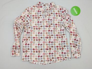 Bluzka damska Quiosque, rozmiar 38. - Fason: luźny, z dekoltem w serek - Rękaw: 3/4 - Wzór: gęsty, kwiatowy nadruk w odcieniach niebieskiego, szarości i burgundu na białym tle - Materiał: lekka, c...