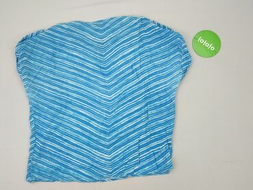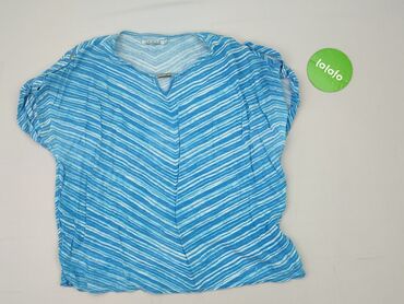 Bluzka QUIOSQUE – rozmiar 40 - Krój: luźna bluzka z rękawem 3/4, okrągły dekolt - Materiał: drobno plisowana tkanina, elastyczna i lekka - Wzór: geometryczne pasy/kratka w kolorach granatowym, bia...