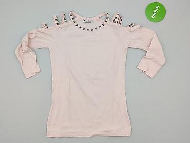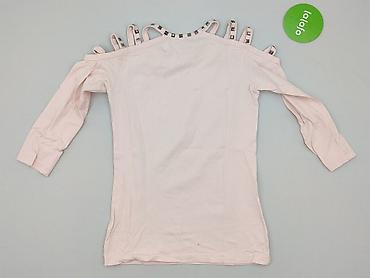 Bladoróżowa bluzka damska hiszpanka - Krój: odkryte ramiona (hiszpanka) z szeroką, marszczoną gumką wokół dekoltu i ramion - Rękaw: krótki, lekko rozszerzany - Rozmiar: S (na metce „WOMEN S”) - Ma...