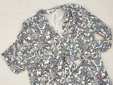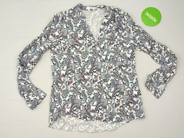 Bluzka damska Reserved - Model: elegancka bluzka z długim rękawem - Wzór: kwiatowy na białym tle (odcienie fioletu, różu i zieleni) - Dekolt: okrągły - Dół: delikatnie zaokrąglony, nieco dłuższy t...