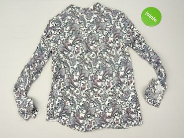Bluzka damska Reserved - Model: elegancka bluzka z długim rękawem - Wzór: kwiatowy na białym tle (odcienie fioletu, różu i zieleni) - Dekolt: okrągły - Dół: delikatnie zaokrąglony, nieco dłuższy t...Stan: