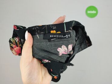 Damska koszula/bluzka z krótkim rękawem - Wzór: czarno‑biały, roślinny/abstrakcyjny all-over - Fason: zapinana na guziki z przodu, lekko taliowana; na dole po bokach wiązania do regulacji szerokoś...Stan: