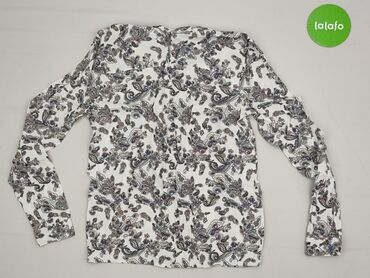 Bluzka damska BELoVED Woman - Rozmiar: EU 40 / ES 42 (z metki) - Materiał: 100% wiskoza – lekka, przewiewna tkanina - Kolor/wzór: białe tło z niebieskim, ornamentalnym wzorem (motywy paisley i roz...Stan: