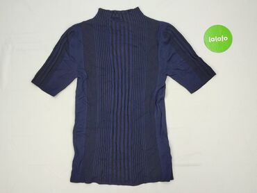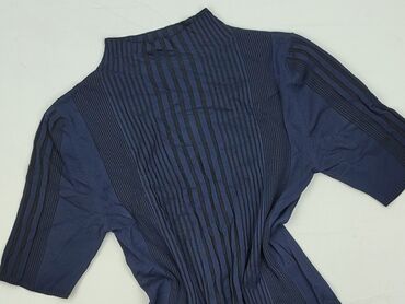 Bluzka w paski, damska - Krój: prosty, lekko luźny - Rękaw: 3/4 - Dekolt: okrągły - Wzór: poziome paski granatowo-białe z melanżowym efektem - Materiał: miękka, elastyczna dzianina swetrowa (przyj...