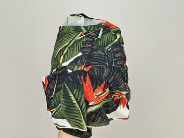- Wzór: tropikalny print z liśćmi i kwiatami w odcieniach zieleni, bieli i intensywnej czerwieni/pomarańczu