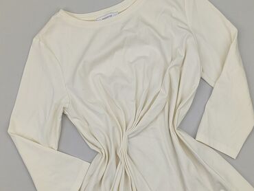 Bluzka damska Reserved - Model: z ozdobną falbaną wzdłuż dekoltu i środka przodu - Kolor: jasny, pudrowy beż - Rękaw: 3/4, mankiety zapinane na guzik - Dół: lekko ściągany gumką - Dekolt: w kształ...