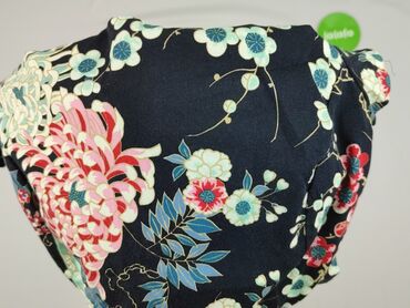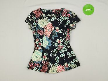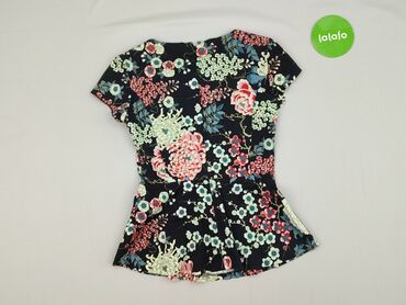 Bluzka damska Reserved - Rozmiar z metki: 34 - Krój: prosty, z krótkim rękawem - Przód: efektowny, symetryczny nadruk w kwiaty (fiolety, zielenie, błękity, odrobina różu) na ciemnym tle - Tył i ma...Stan: