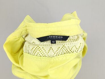 Koszula/bluzka damska Reserved - Model: taliowana koszula z baskinką - Kolor: jasnoniebieski w drobne, białe prążki - Zapięcie: na guziki z przodu (połowa długości) - Rękaw: długi, mankiety na guz...