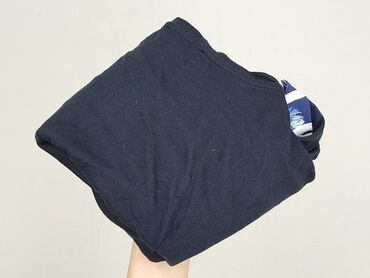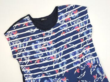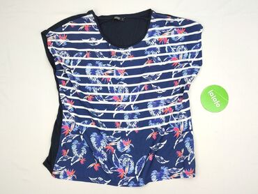 Bluzka damska „Blue” – rozmiar 40 - Fason: luźna bluzka z długim rękawem, okrągłym dekoltem i lekkim marszczeniem na dole oraz przy mankietach. - Wzór: kolorowe, tropikalne liście na granatowym tl...