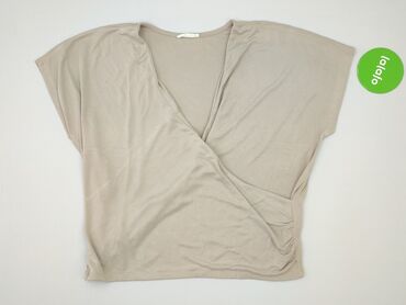 Bluzka damska RESERVED - Kolor: biały/ekri - Krój: krótka, lekko pudełkowa, z szerokim dołem - Dekolt: w kształcie litery V, wiązany z tyłu na troczki - Rękawy: krótkie, z szeroką mankietową listw...